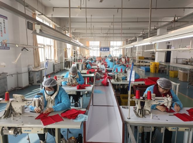 七只羊服飾創(chuàng)立于1995年,是一家集羊毛防寒服研發(fā)、設(shè)計(jì)生產(chǎn)、銷售、售后服務(wù)于一體的高新技術(shù)企業(yè)。最近氣溫持續(xù)走低,保暖性好又柔軟舒適的羊絨衫、戶外御寒性十足的防寒服銷量持續(xù)走高,走進(jìn)榆林高新區(qū)七只羊服飾加工車間,工人們正在縫紉機(jī)前飛針走線,旁邊是一筐筐待加工的原材料,整個(gè)車間呈現(xiàn)一派繁忙的生產(chǎn)景象。
